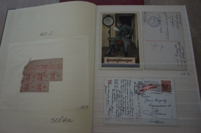 Insteekboek met verzameling diverse items, censuur, poststukken e.d. betreffende de eerste wereldoorlog.