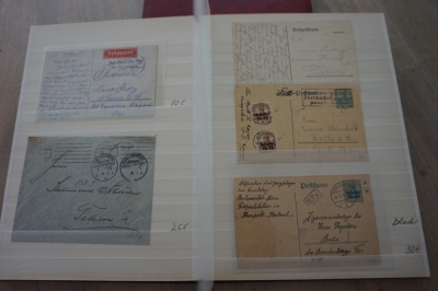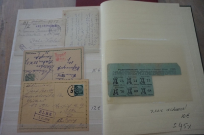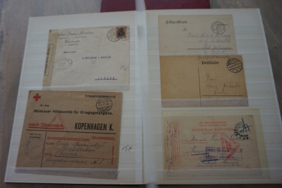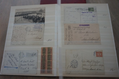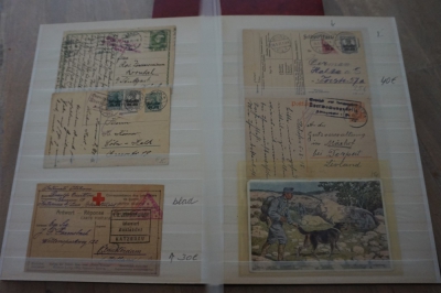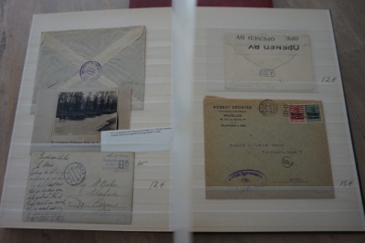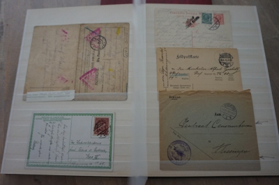 1e Wereldoorlog verzameling poststukken en andere items in album waarbij censuur en div. stempels