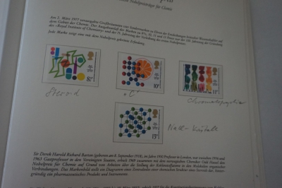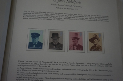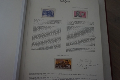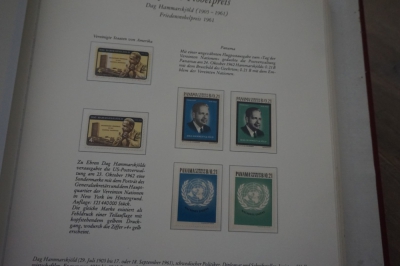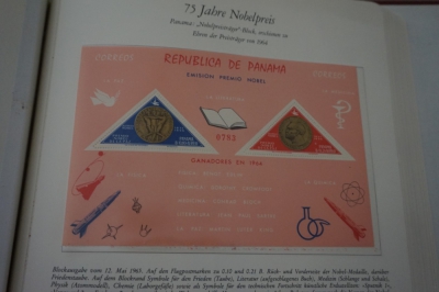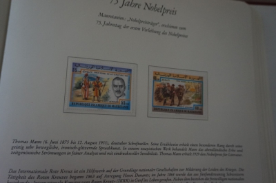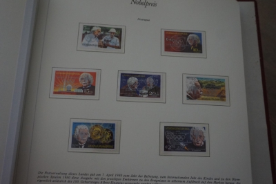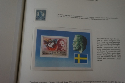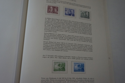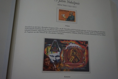 Album 75 jaar Nobelprijs met verzameling postfrisse postzegels en wat poststukken op ong. 55 pagina's.
