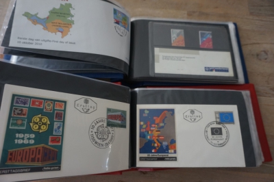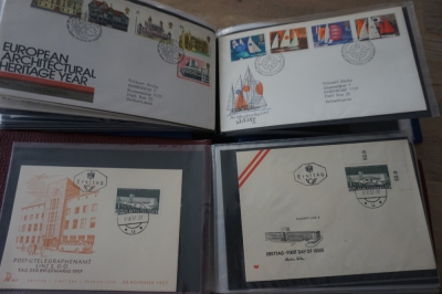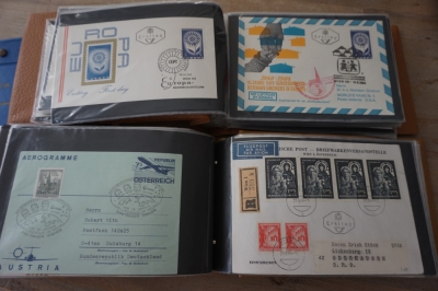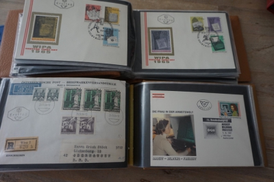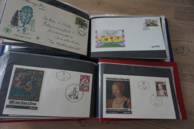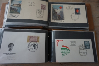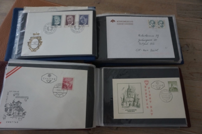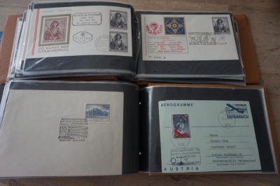 9 Albums met verzameling honderden FDC's en brieven, veel Oostenrijk