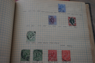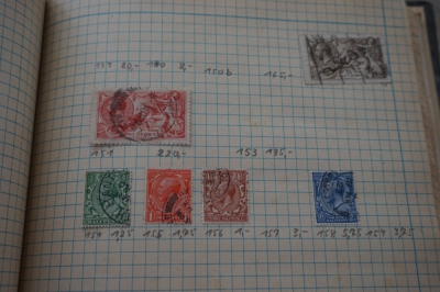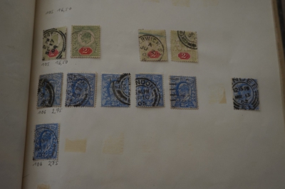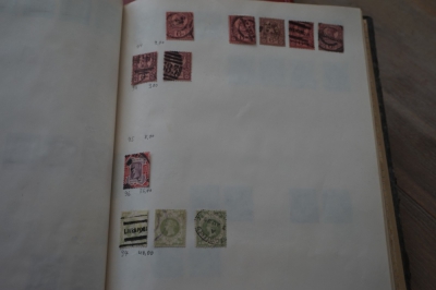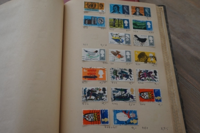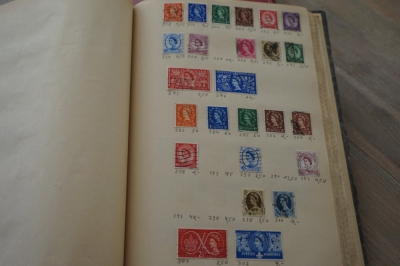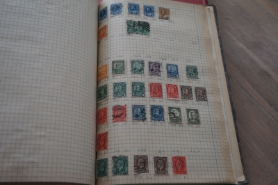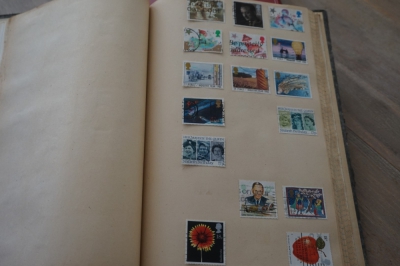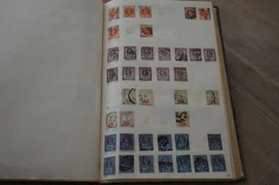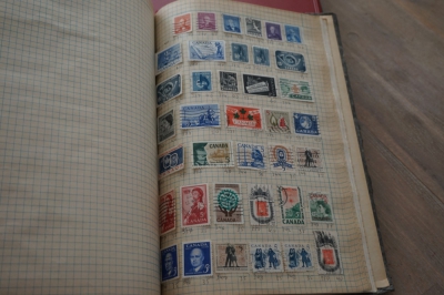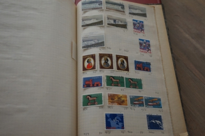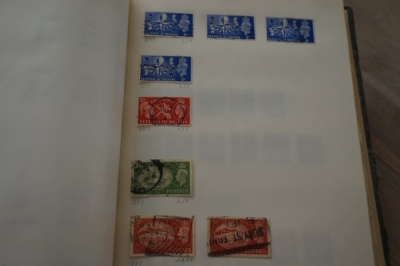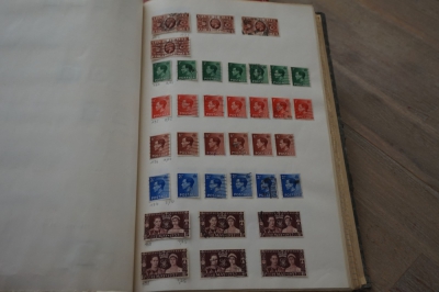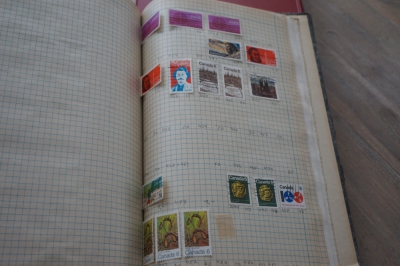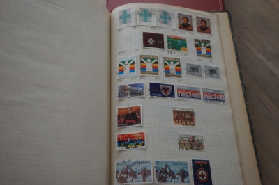 Album met verzameling veel postzegels, meest Engeland, Canada en Zuid Amerika