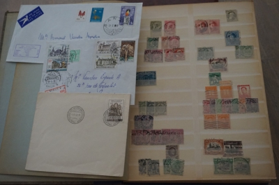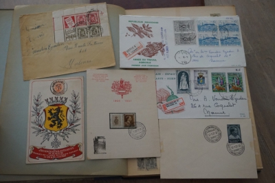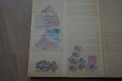 Insteekboek met verzameling postzegels Belgiƫ, ook een paar leuke poststukken en iets divers.