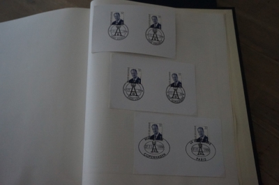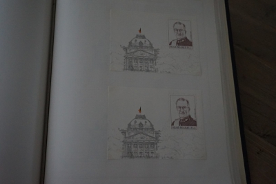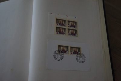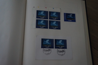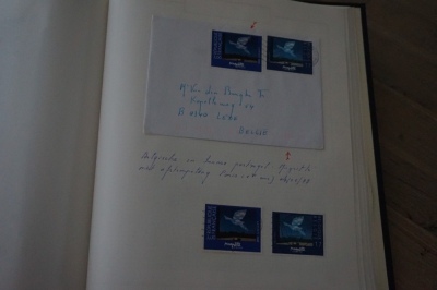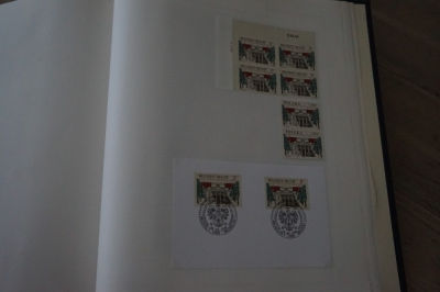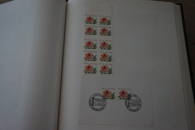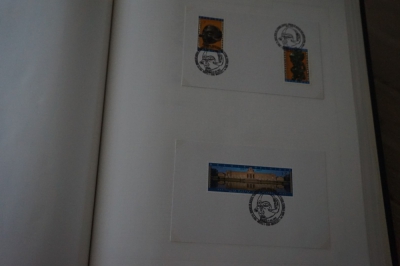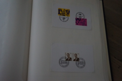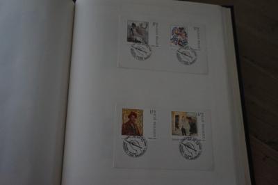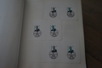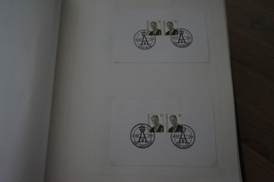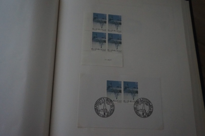 Blanco album met verzameling Belgiƫ postzegels, poststukken, speciale stempels e.d. op ong. 135 bladen.