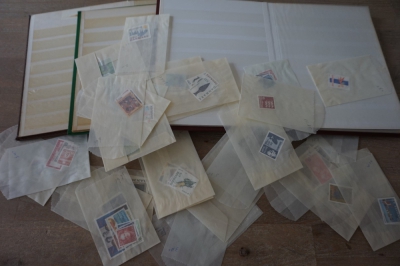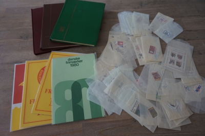 Verzameling postfrisse postzegels Denemarken in zakjes en jaarsets plus 3 lege insteekboekjes om ze in te doen....