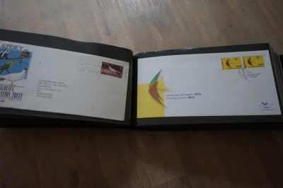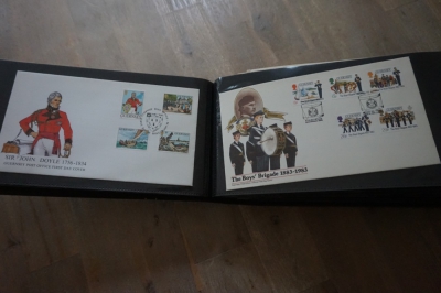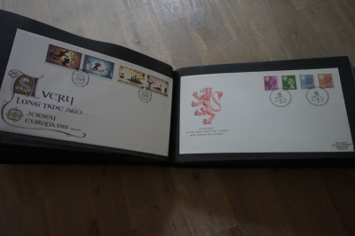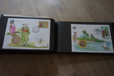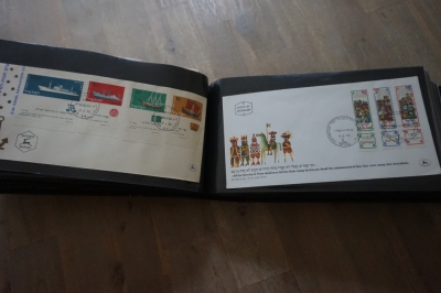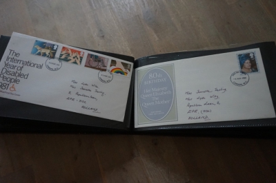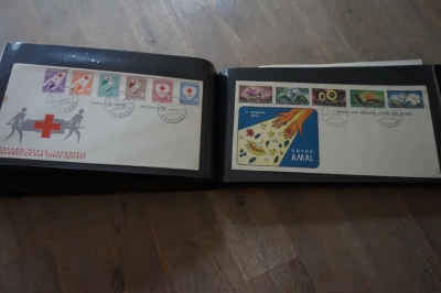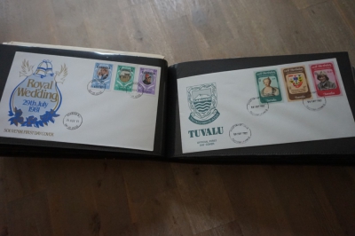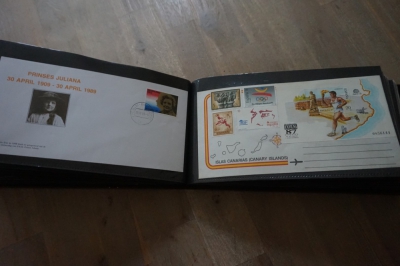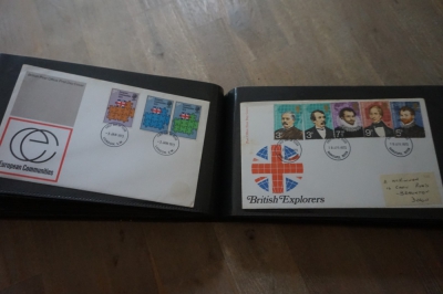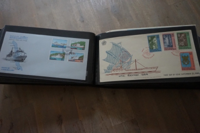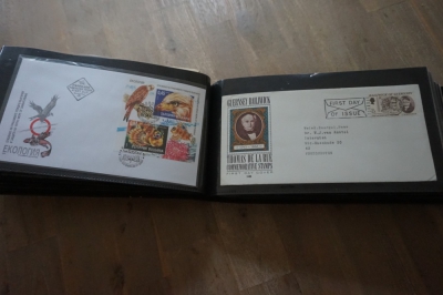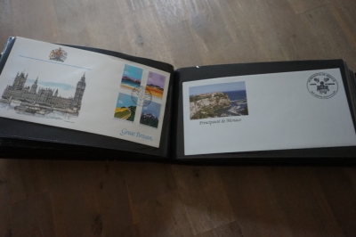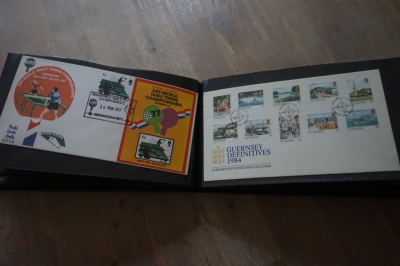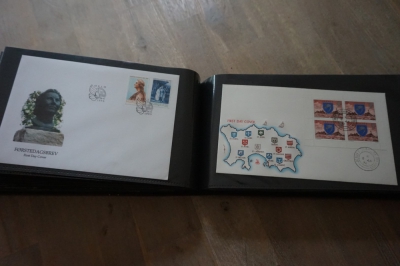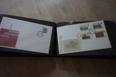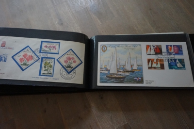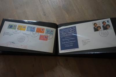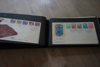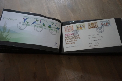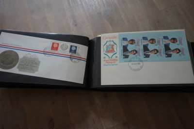 Divers verzameling FDC's en poststukken in album met veel Engeland en gebieden