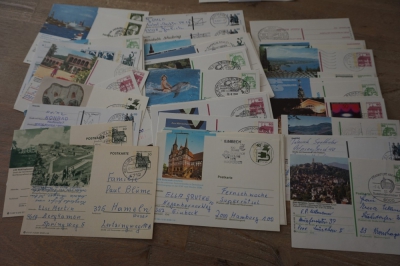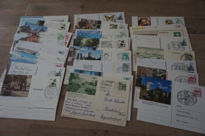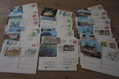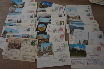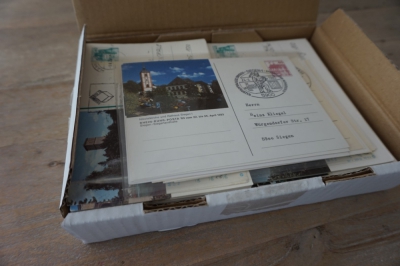 Doosje met ong. 300 gelopen geïllustreerde briefkaarten Duitsland, zo te zien meest verschillend.
