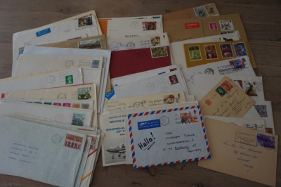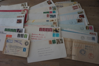 Doosje met ong. 225 brieven Engeland, gebruikspost.