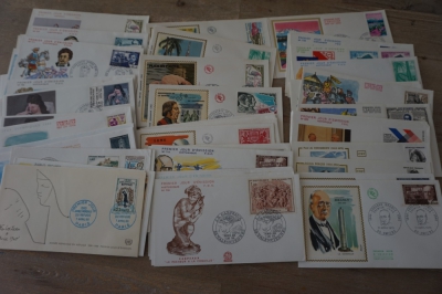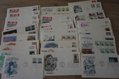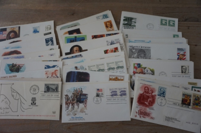 Doosje met ong. 300 FDC's USA en Frankrijk.