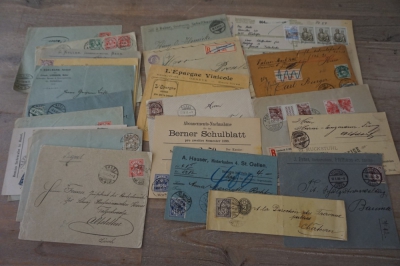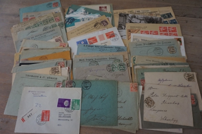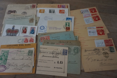 Doosje met ruim 200 brieven en poststukken Zwitserland met veel oud gebruikspost.