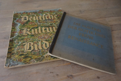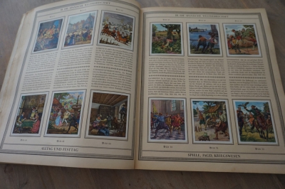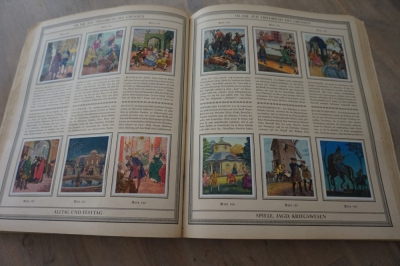 2 Albums Duitsland met ingeplakte plaatjes, verzameld bij sigarettenaankopen, rond 1935.