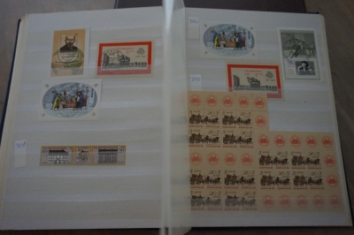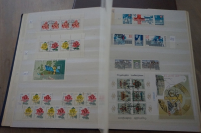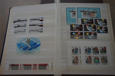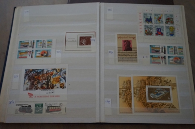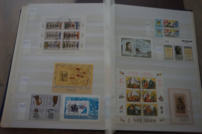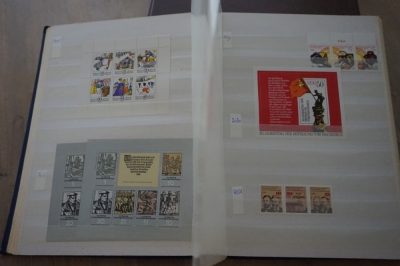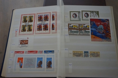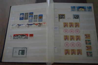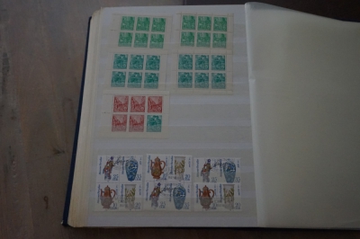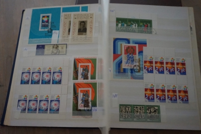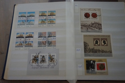 Dik insteekboek met verzameling postzegels Duitsland DDR velletjes, combinaties, e.d.