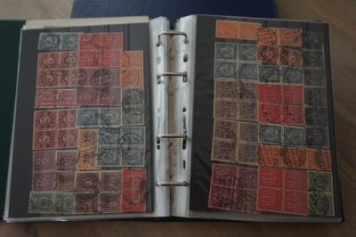 Album met verzameling postzegels Duitsland op insteekkaarten.
