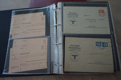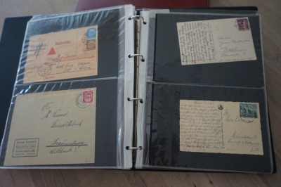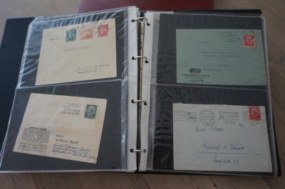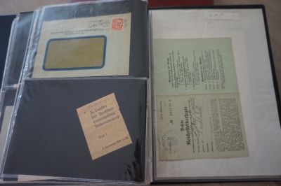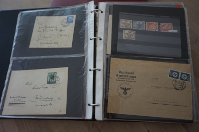 Ringband met verzameling ong. 45 brieven en poststukken plus stempels op briefstuk en diverse andere (aparte) dingen van Duitse Rijk.