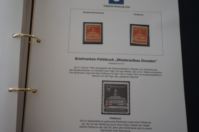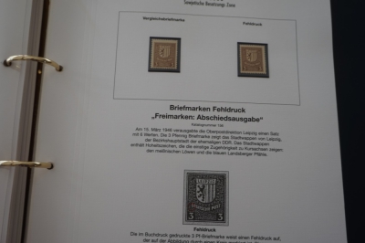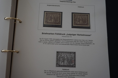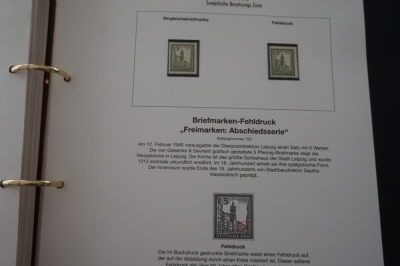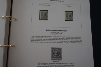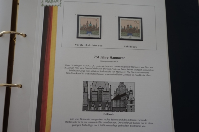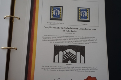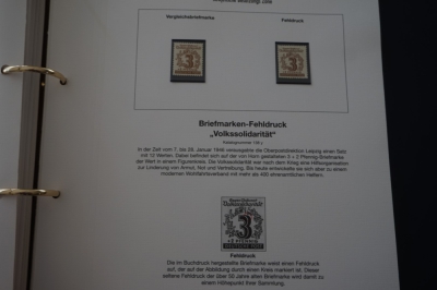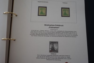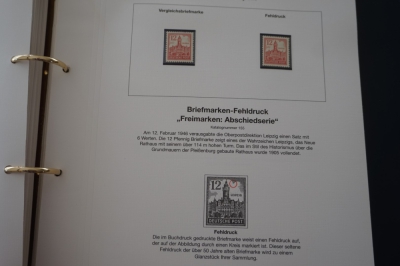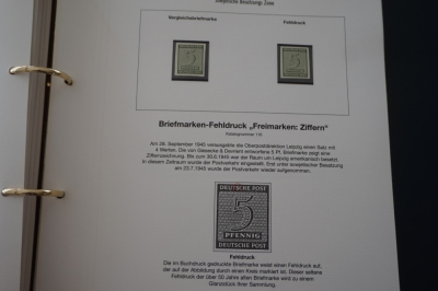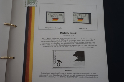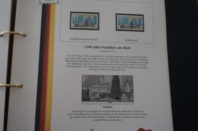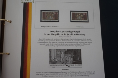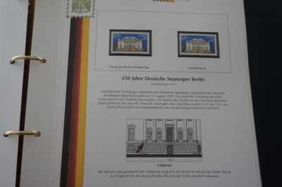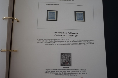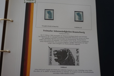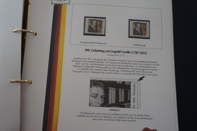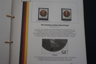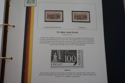 Album met verzameling ruim 55 postzegels met beschreven plaatfouten Duitsland. Steeds een zegel zonder, en eentje met de betreffende plaatfout.