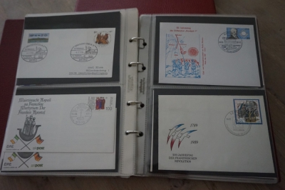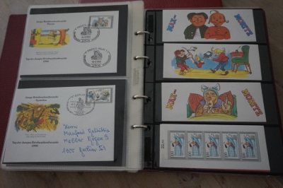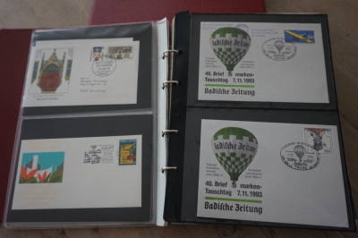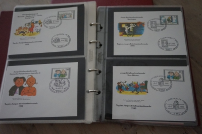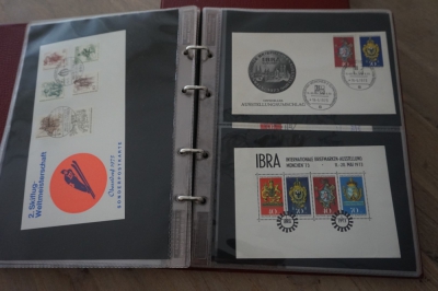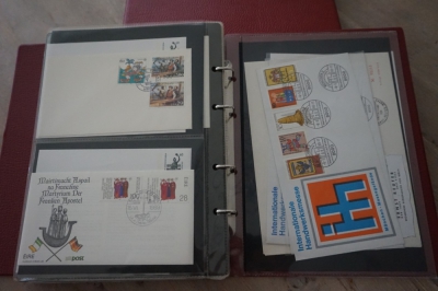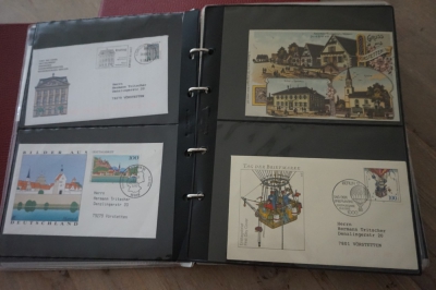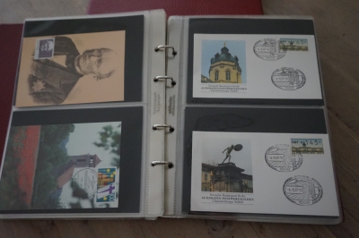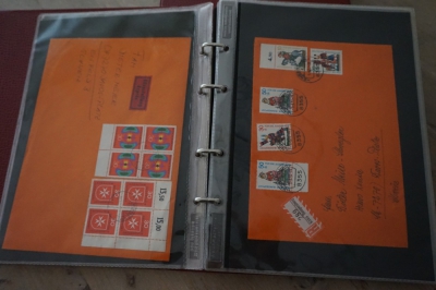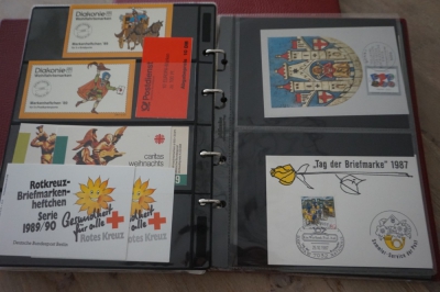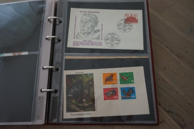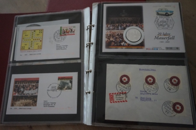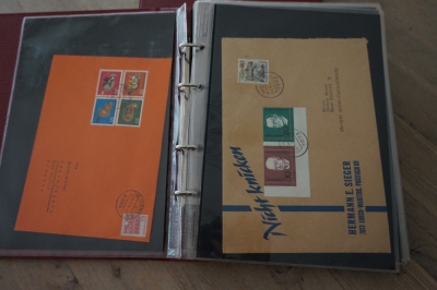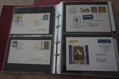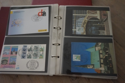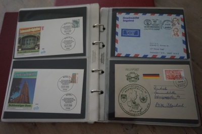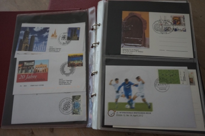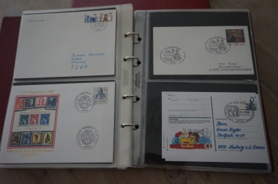 2 Albums met verzameling ong. 175 speciale enveloppen, poststukken, maximumkaarten, postzegelboekjes, etc. van Duitsland.
