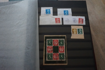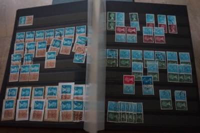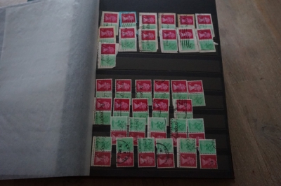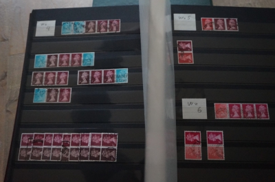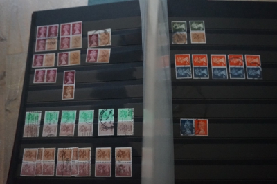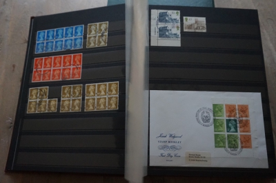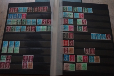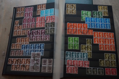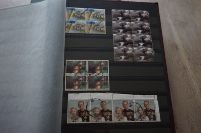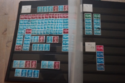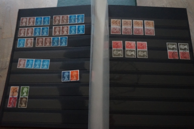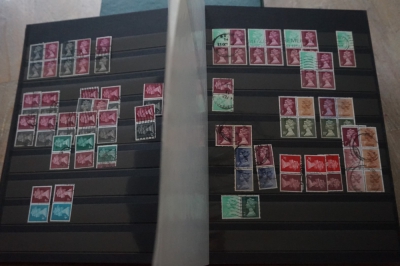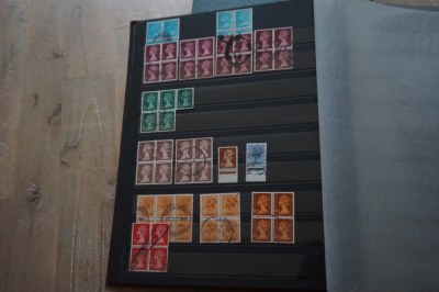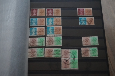 Engeland verzameling dubbele postzegels in dik insteekboek, veel Machin met combinaties