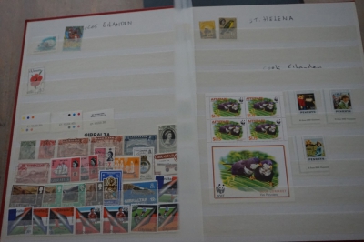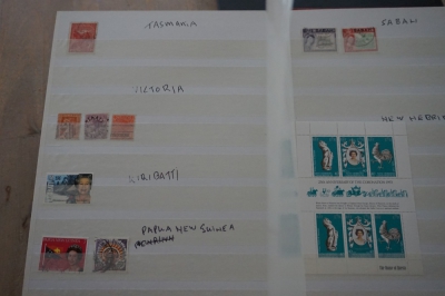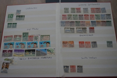 Insteekboek met verzameling postzegels Engelse gebieden.
