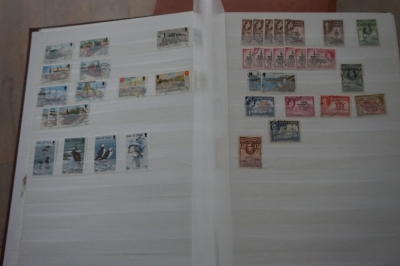 Insteekboek met verzameling postzegels Engelse gebieden.