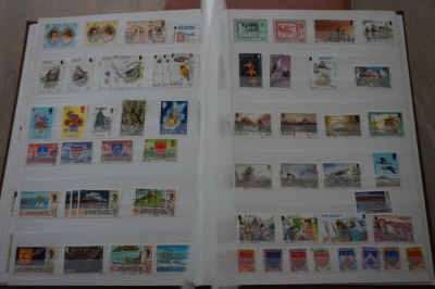 Engelse gebieden waarbij Kanaaleilanden verzameling postzegels in insteekboek