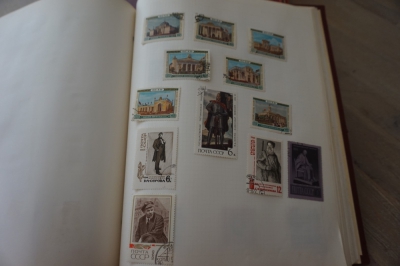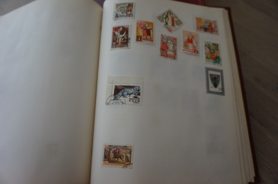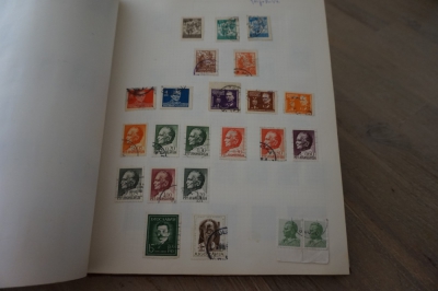 Album met verzameling ong. 1500 postzegels, vooral Oost Europa.