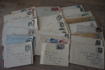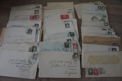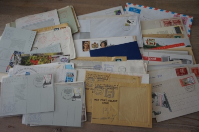 Doos met vele honderden brieven en poststukken divers Europa, met veel gebruikspost.