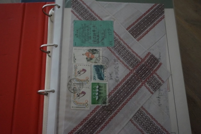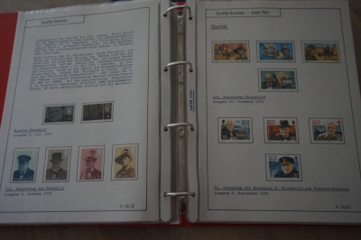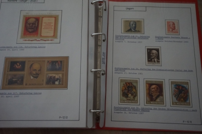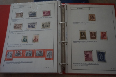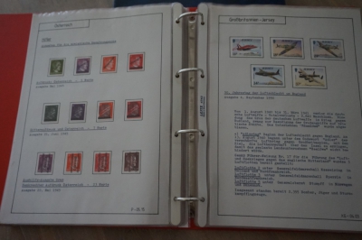 Ringband met zelfgemaakte albumbladen, verzameling postzegels Europese landen, veel ongestempeld.