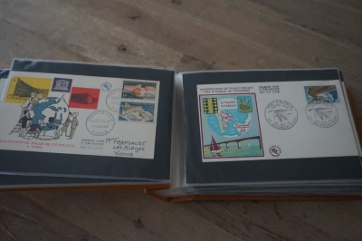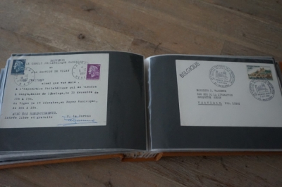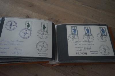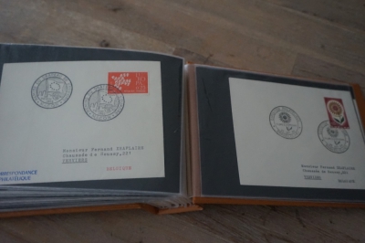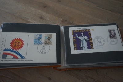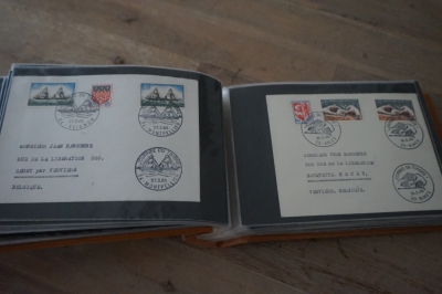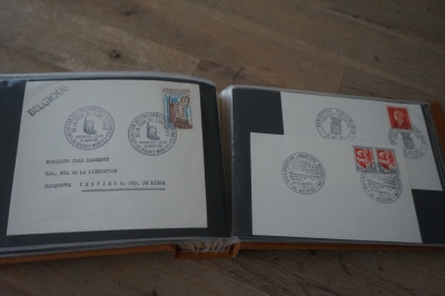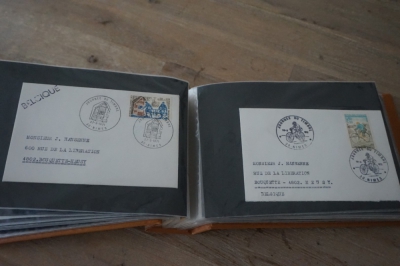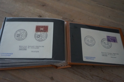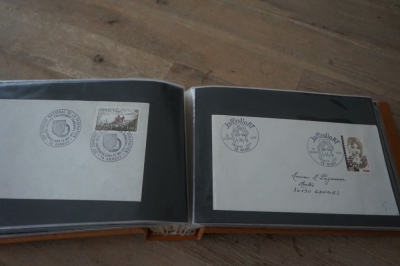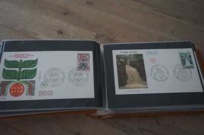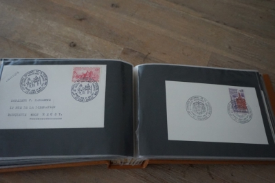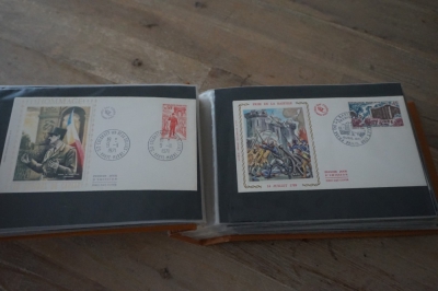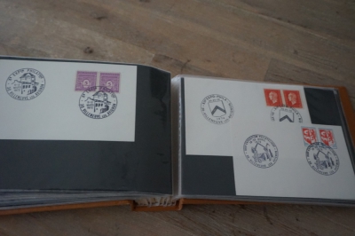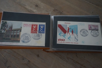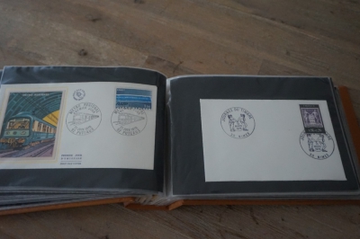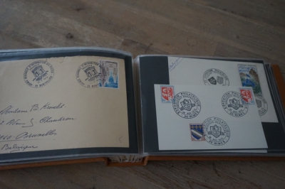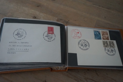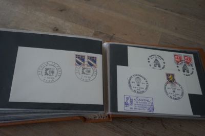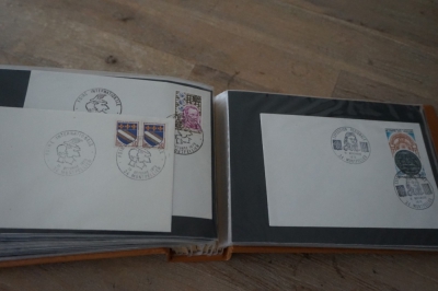 Album met verzameling ong. 70 FDC's en enveloppen met speciale stempels Frankrijk.