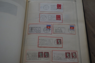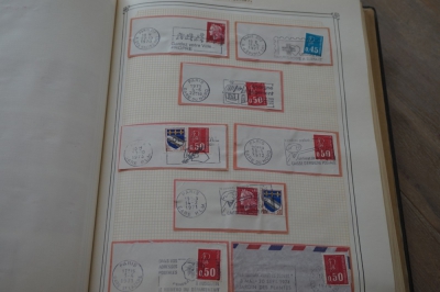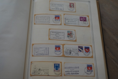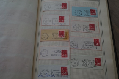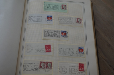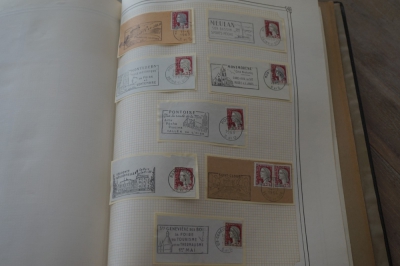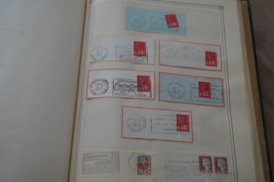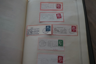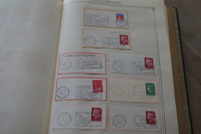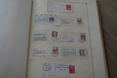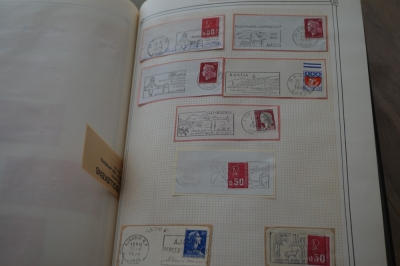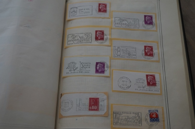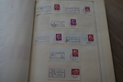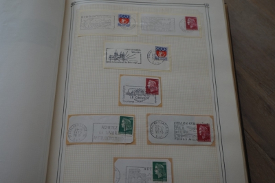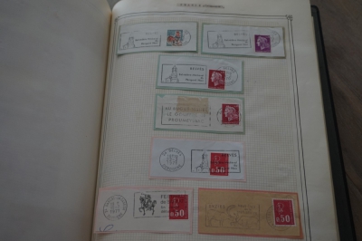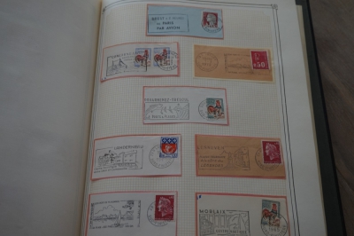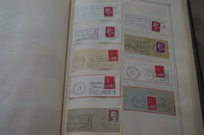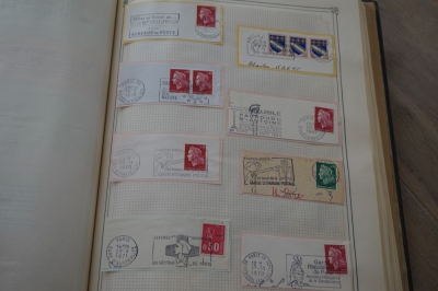 Frankrijk verzameling stempels op briefstukjes met postzegels in 2 albums