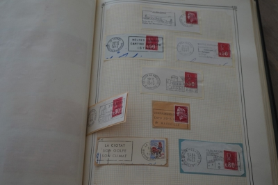 2 Dikke albums met grote partij stempels Frankrijk op briefstukjes.