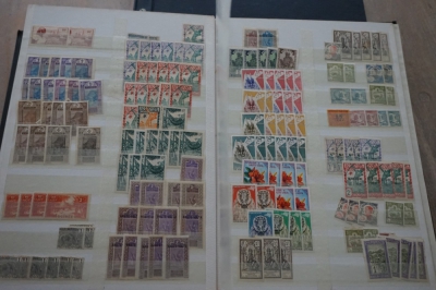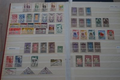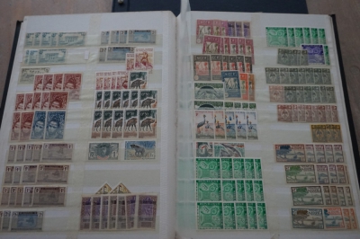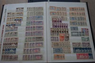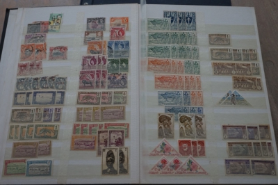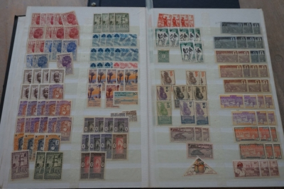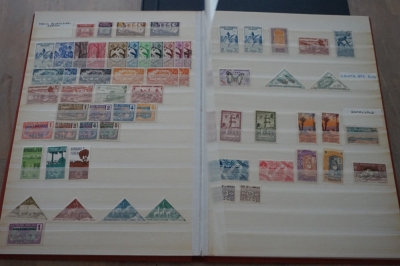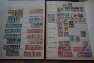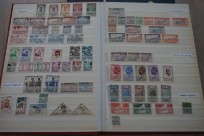 2 Insteekboeken met verzameling postzegels Franse gebieden.