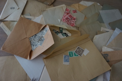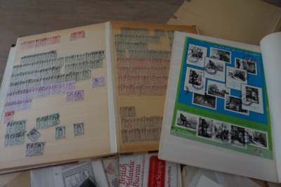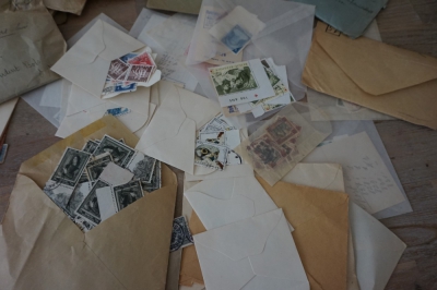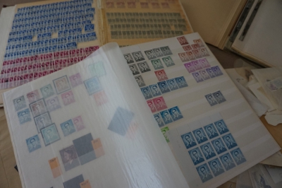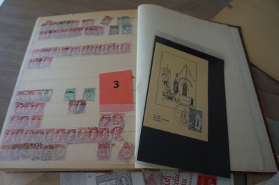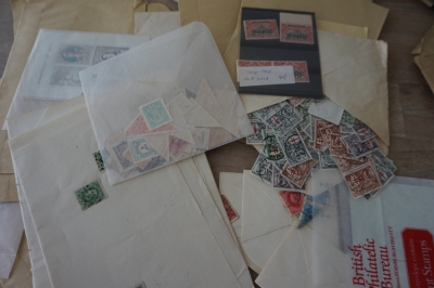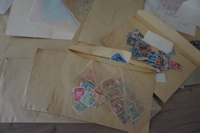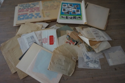 Een door ons niet bekeken partij postzegels in een heleboel envelopjes, op bladen en meer. Zo te zien vaak per land gesorteerd.