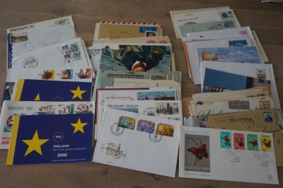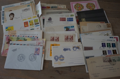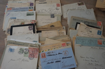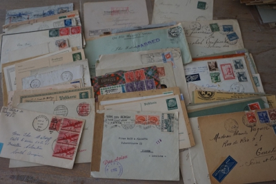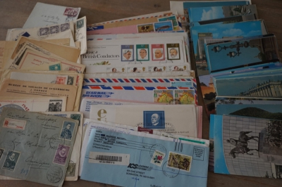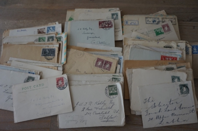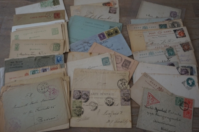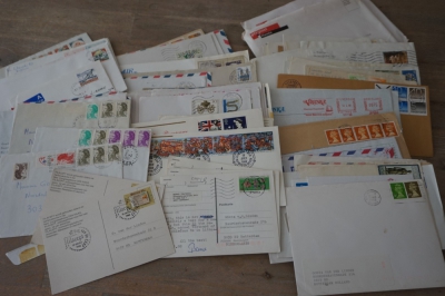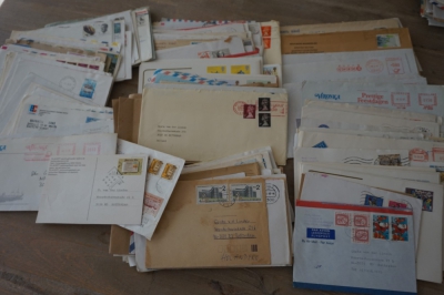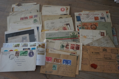 Een doos met vele, vele honderden brieven en poststukken met van alles. Met ook veel gebruikspost waarbij aardig oud, Heerlijke snuffelpartij voor de brievenliefhebber.