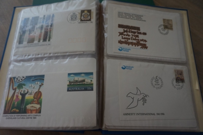 6 Albums met behoorlijke verzameling diverse FDC's en poststukken.