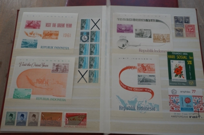 Insteekboek met verzameling postzegels Indonesiƫ meest postfris, iets Nederlands Indiƫ.