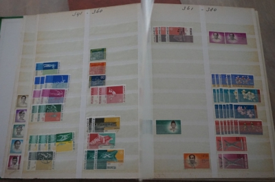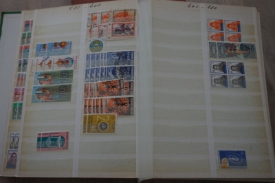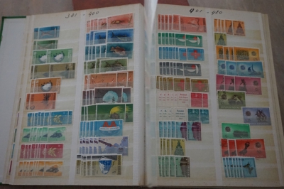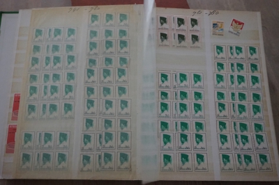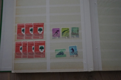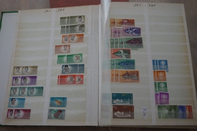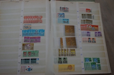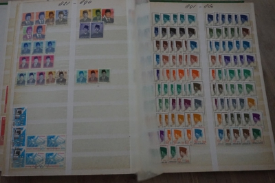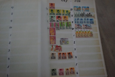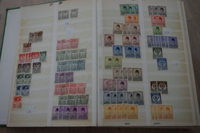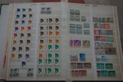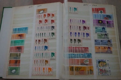 Dik insteekboek met verzameling postzegels Indonesiƫ.