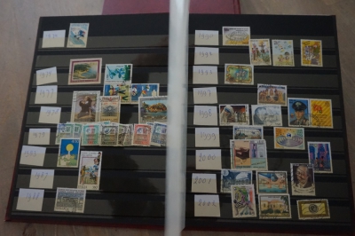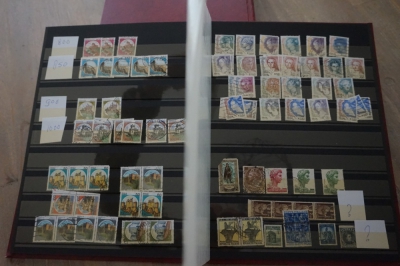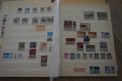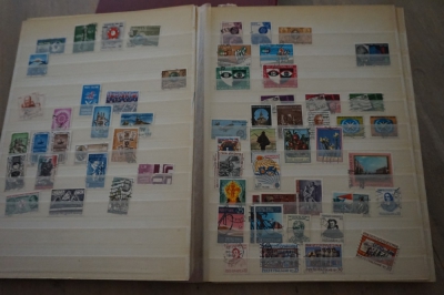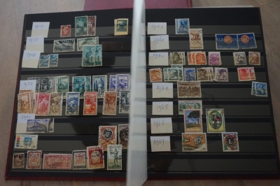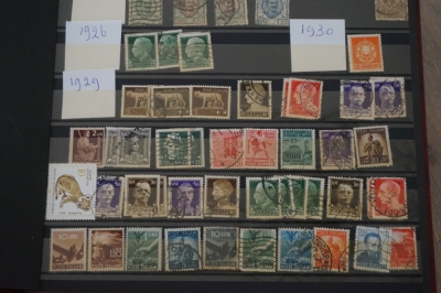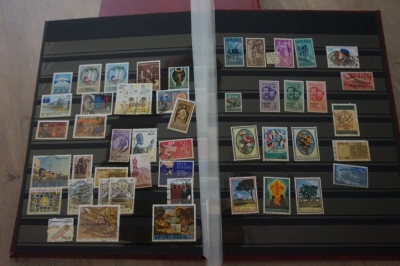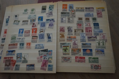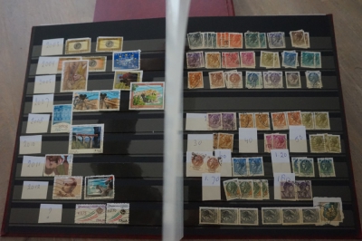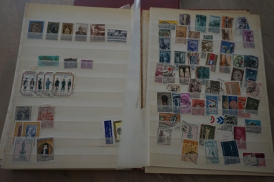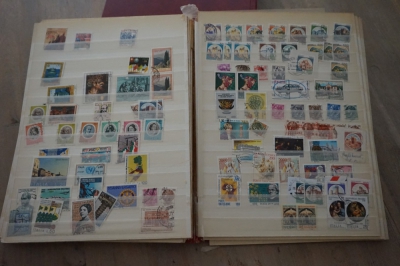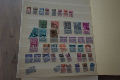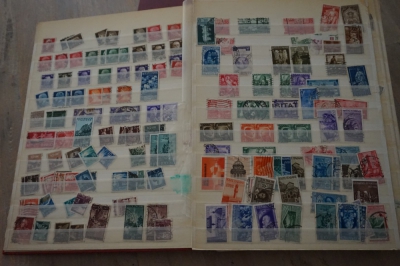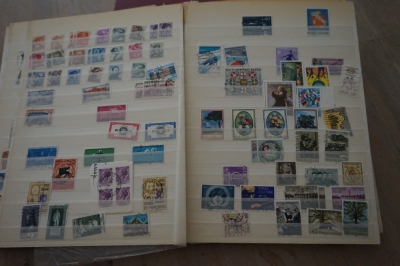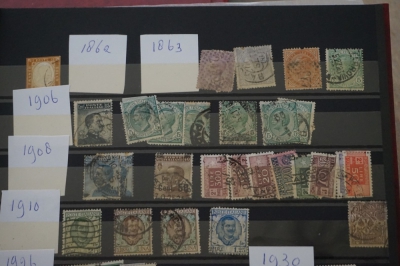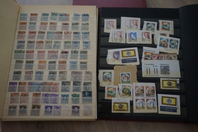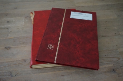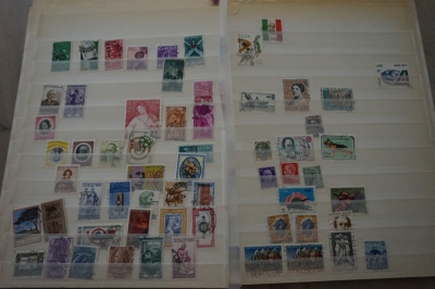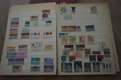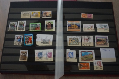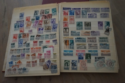 2 Insteekboeken, deels losliggend met wat rommelige verzameling postzegels Italiƫ.