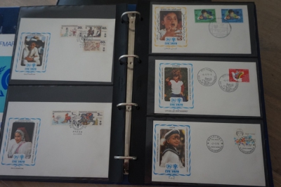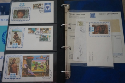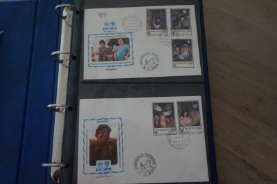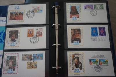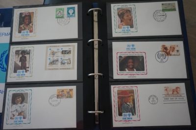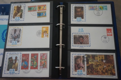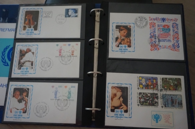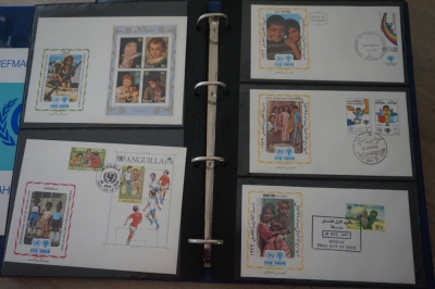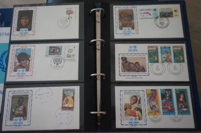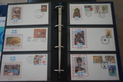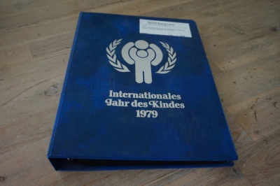 Album Internationaal jaar van het kind met verzameling ong. 50 poststukken plus een catalogus van dit thema.