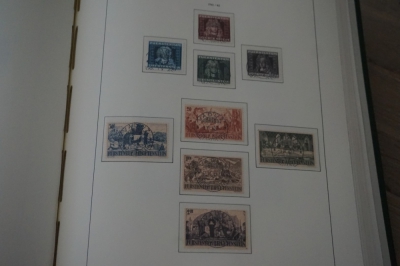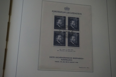 Leuchtturm album Liechtenstein 1912-1974 met gestempelde topverzameling postzegels in mooie kwaliteit incl. hoge waarden, blok 1 (€ 3000), tandingvariëteiten, dienstzegels, etc. Michel cataloguswaarde is ong. € 20.000.