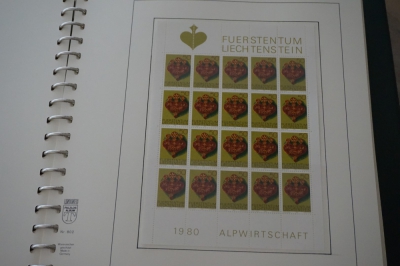 Lindner T album Liechtenstein 1980-1983 met complete postfrisse en ook gestempelde verzameling postzegels plus extra's waarbij ruim 40 vellen (Kleinbogen).