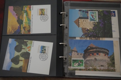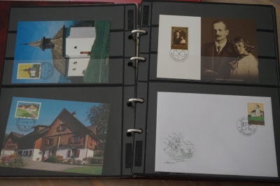 Liechtenstein verzameling maximumkaarten, brieven met speciale stempels etc. in 2 albums