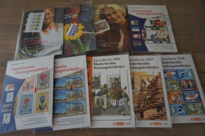 Complete set nieuwe jaarcollecties velletjes postzegels Nederland 2000-2008. Nominaal frankeergeldig ong. € 467.