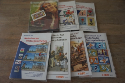 Nederland 2002-2008 complete en nieuwe set jaarcollecties velletjes met postfrisse postzegels incl. frankeergeldig