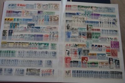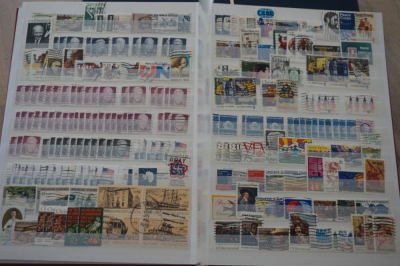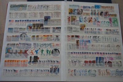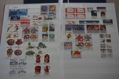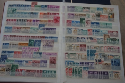 Insteekboek met verzameling postzegels Nederland en USA.