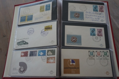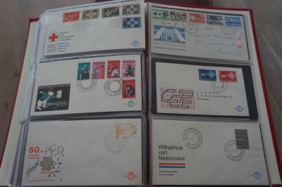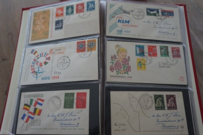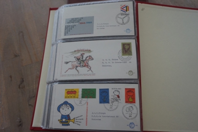 Album met verzameling ong. 90 wat oudere FDC's Nederland.