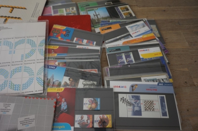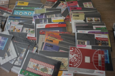 Uit een nalatenschap kregen we een grote partij voormalige nieuwtjes postzegels Nederland postfris. Ze waren nog ingepakt, we hebben de enveloppen geopend en de inhoud ongezien in 2 dozen verdeeld. In deze doos veel postzegelmapjes, jaarcollecties en wat zakjes en insteekkaartjes postzegels. Spotprijsje.