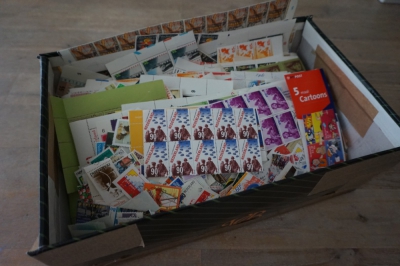 Nederland grote partij postfrisse postzegels in schoenendoos