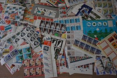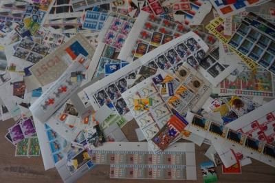 Schoenendoos met heel veel postfrisse postzegels Nederland, veldelen, etc.
