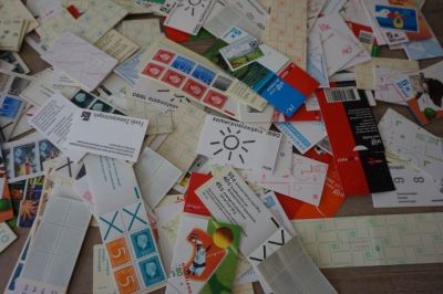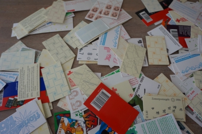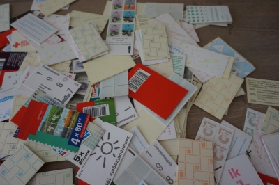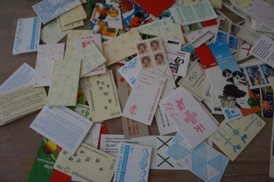 Schoenendoos met honderden uit te zoeken postzegelboekjes Nederland.