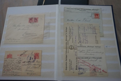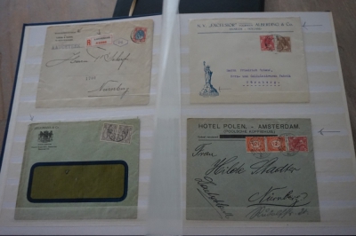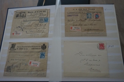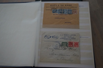 Nederland verzameling brieven en poststukken met Wilhelmina frankeringen in album