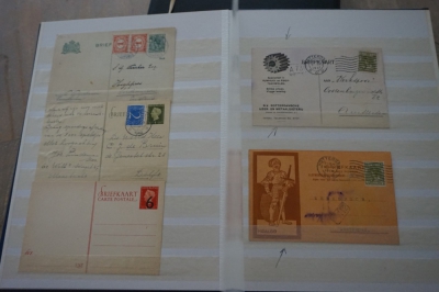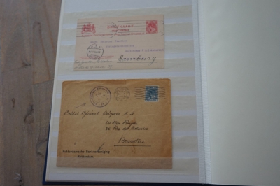 Insteekboek met verzameling brieven en poststukken Nederland met Wilhelmina frankeringen, particuliere bedrukkingen etc.